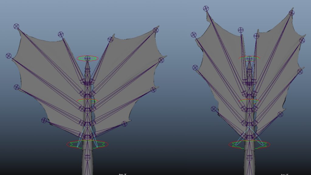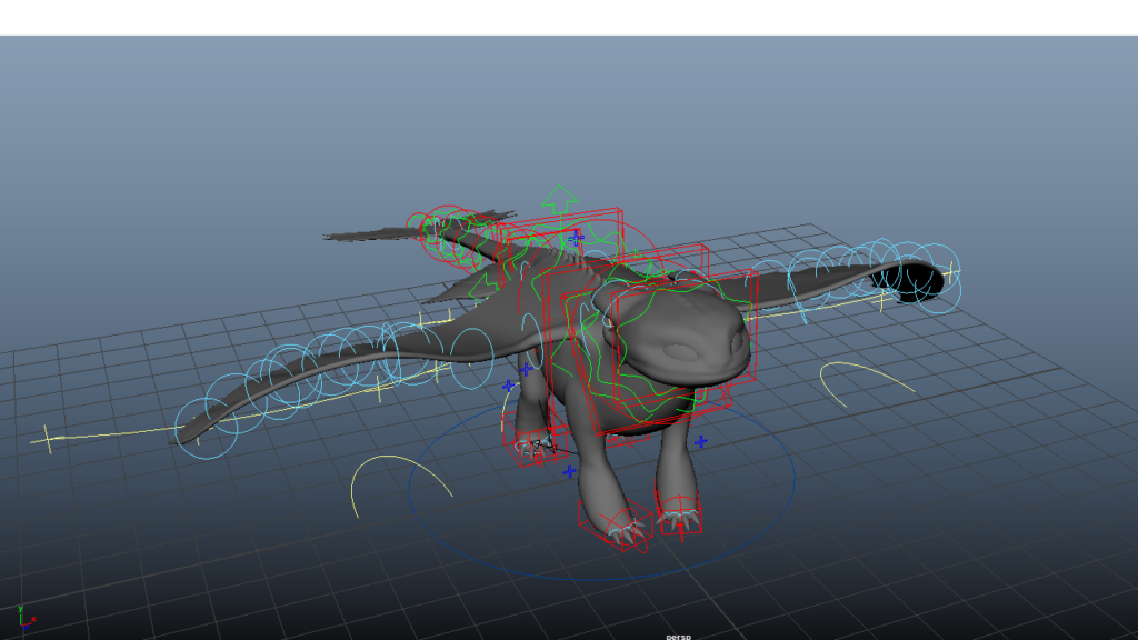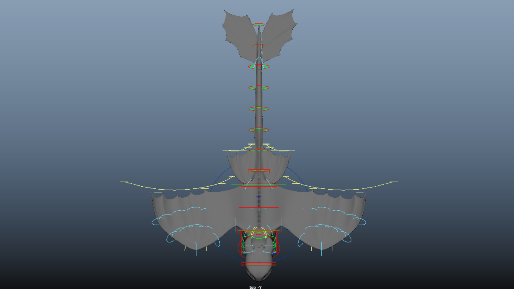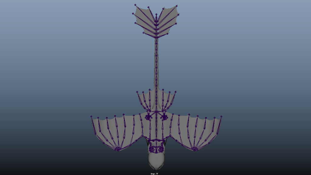 Rig made with Advanced Skeleton dragon template. It required some custom solutions and adjustments for the wings and tail fin.